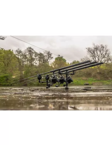 De Adustable Stage Stand beschikt onderaan over een ‘ball and socket’ verbinding. Je kunt de Adjustable Stage Stand simpelweg onder de juiste hoek opstellen om er zeker van te zijn dat de hengels waterpas komen te liggen. Zet vervolgens het bovenste deel van de basisplaat vast, waarmee de Stage Stand in de juiste positie gezekerd wordt. Zelfs wanneer je vist in de richting van obstakels met een vrijwel vast gedraaide slipinstelling, hoef je niet bang te zijn dat de Stage Stand je teleur zal stellen. De Lok Down Cam waarmee het bovenste deel van de Stage Stand uitgevoerd is, biedt je alle zekerheid wanneer de steunen volledig uitgeschoven zijn. De van noppen voorziene basis maakt dat de Adjustable Stage Stand goed vast komt te staan op elk type oppervlak, het draaien van het geheel wordt hiermee voorkomen en je hebt zo veel meer grip wanneer de stage stand vastgezet is.