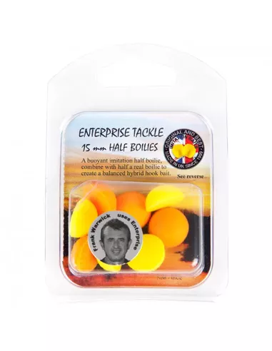 De Half Boilies van Enterprise Tackle zijn ideaal om het bodem-aas uit te balanceren. Met de Half Boilies creëert u gemakkelijk een snowman presentatie, en bent u er zeker van dat er altijd een halve boilie aan uw onderlijn blijft zitten op wateren waar zich kreeften bevinden.