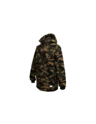De fleece bevat een dubbel laags hood, een hoge nek en een stom flap beschermende halve rits tegen tocht. De mouwen zijn voorzien van elastiek en een kangaroo zak op de voorzijde van de fleece om je handen warm te houden.