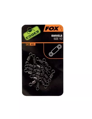 Fox swivels zijn gefabriceerd met een matte coating hebben een ook onder grote spanning soepel draaiend middenstuk en perfect ronde ogen. Maat 7 swivels passen exact in Fox clips, sleeves, kralen en onze range inline loden. De kleinere maat 10 is ideaal voor gebruik bij combi-rigs en penvissen.