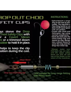 Kleine plastic ‘C’-vormige clips ontworpen om chod- en helikoptermontages aan te passen, zodat het lood gemakkelijker te wisselen valt en/of drop-off eigenschappen toe te voegen. Eén pakket bevat 12 van elke maat/sterkte.