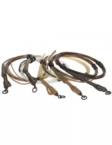 The Dark Matter Leaders are virtually indestructable. A heavy-duty monofilament core and polyurethane outer gives these leaders extremely high abrasion resistance. They’re virtually invisible under water too, in keeping with the Safe Zone principle; the less obtrusive your end tackle appears, the more bites you will receive. Tungsten sections that have been moulded into the leaders help to keep them pinned down too. They come in 3 versions, basic size 8 ring swivel, Hybrid Lead Clip and Heli/Chod versions.