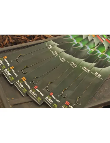An exact, ready-tied version of the rig that Danny Fairbrass has used for the majority of his carp fi shing. The DF rig features a Wide Gape hook and N-Trap coated braid and comes with free Extenda stops in the pack. There are 12 rigs in the range including X-Strong Euro versions, and all are available in both barbed and barbless.