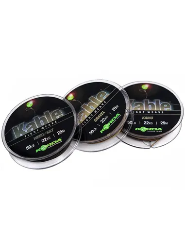Korda Kable Tight Weave is zo ontworpen om de sterkste leadcore te zijn die beschikbaar is. Met camouflage eigenschappen vertoont en met een breeksterkte van meer dan 50lb (22kg), zal het je niet teleurstellen in veeleisende situaties.