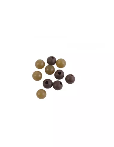 Mixed Rubber Beads suitable for lots of fishing situations, including sensitive free-running rigs or for use on Helicopter rigs. Each pack comes with 5 x green and 5 x brown, something for every lake or riverbed. Perfect texture for mounting onto leaders or leadcore when needed. Can be pierced directly with a needle when required.