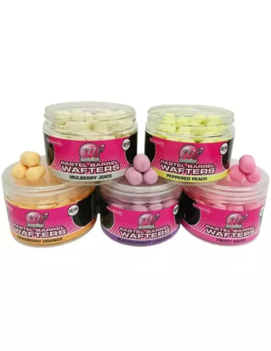 Het “washed out” voorkomen van de Pastel Barrel Wafters is het eerste opvallende aan deze haakaas range.. Hierdoor zijn ze perfect voor schuwe of zwaar beviste karpers op de hedendaagse viswateren. Deze lichte toon staat daarentegen in contrast met de hoge attractie die te danken is aan top kwaliteit vloeibare flavours, enhancers en sweetners die in optimale dosering gebruikt zijn. Combineer deze attractors, kleur, ton vorm en uitgebalanceerde eigenschappen en je hebt een geavanceerd haakaas dat voor de vis niet te weerstaan zal zijn!