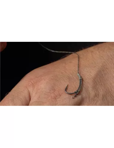 Extra tough, spliceable woven braid hooklink material, ideal when abrasion resistance is a critical factor. Can be spliced around a swivel or hook eye while retaining the suppleness needed to effortlessly hug any terrain. Mottled low-vis finish. Ultra-fine splicing needle included.