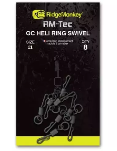 Allows ultra-fast replacement of hooklinks, featuring a round profile ring and unique levelled quick change arm to minimise silicone sleeve damage. Size 8 fits most common lead systems, with the size 11 being ideal for helicopter set ups. High quality brass, unique levelled quick change arm. Round profile ring, smooth swivel action with an anti-glare finish.