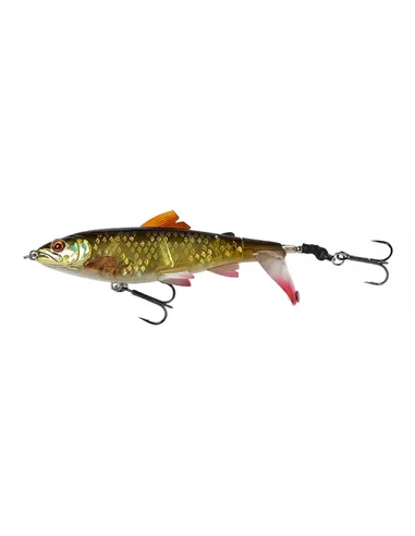 Based on a 3D Scan of a Baby trout, with superb details and a realistic profile. The Turning tail, smashes into the water, creating a loud plopping sound, leaving a super wake and bubble trail behind the lure. The small Metal rivet in the tail enhances the sound and spit calling in the Big predator fish!